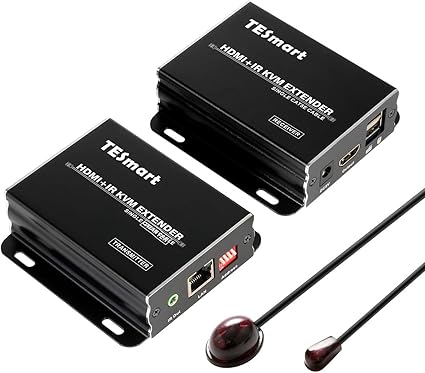 One Sender One Receiver Tesmart 120m Hdmi Kvm Extender Over Tcp Ip Ethernet Over Single Cat5e Cat6 Cable 1080p With Ir Remote Up To 393ft Cables Kvm