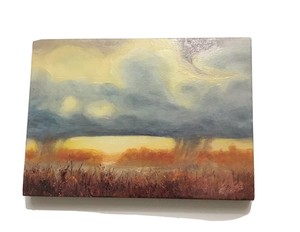 Sunset clouds at the beach. 8x10, oil on canvas. : painting